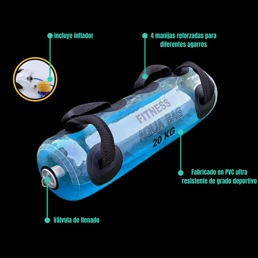 El AQUA BAG es la herramienta de entrenamiento dinámico que usa la inestabilidad del agua para activar 3 veces más tus músculos estabilizadores